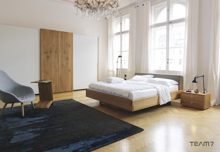 Die Betten überzeugen nicht nur durch ihre Langlebigkeit und Stabilität, sondern auch durch die wohltuende Ausstrahlung des Naturmaterials. Jedes Bett ist ein Unikat, dessen individuelle Holzmaserung für ein warmes und harmonisches Ambiente sorgt. Egal ob minimalistisch, modern oder klassisch – TEAM 7-Betten passen sich Ihrem Wohnstil an.
